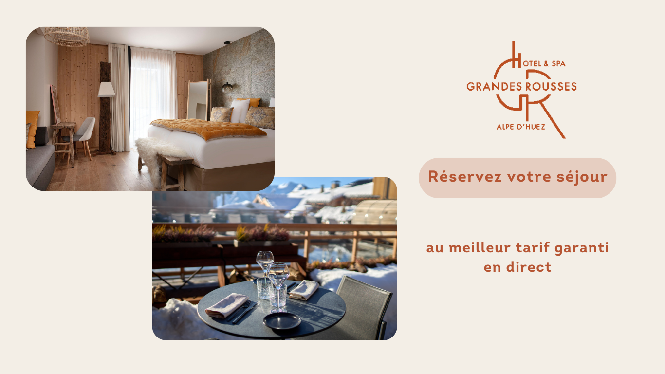 Situé à proximité des pistes et chemins de randonnée, Grandes Rousses Hotel & Spa propose un service exceptionnel d’accessibilité. À seulement 1h15 de Grenoble et 2h15 de Lyon, l’hôtel vous invite à une escapade romantique facilement accessible. Le parking privé facilite votre arrivée et les services de voiturier et de bagagiste vous accueillent avec professionnalisme. Malgré sa proximité avec plusieurs grandes villes, l’établissement garantit un dépaysement total, avec tout le confort d’un 5 étoiles.