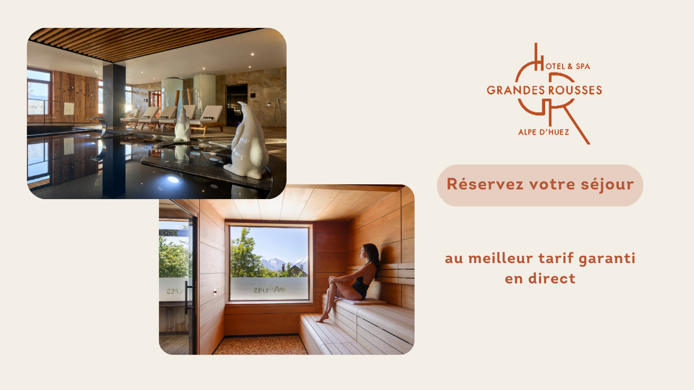- Le sauna panoramique avec vue sur le manteau neigeux des sommets de l’Alpe d’Huez : la chaleur sèche élimine les toxines et favorise la récupération musculaire ;